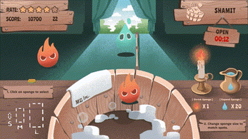 - Click flame or water to scale the sponge to match the size of the spots to be cleaned